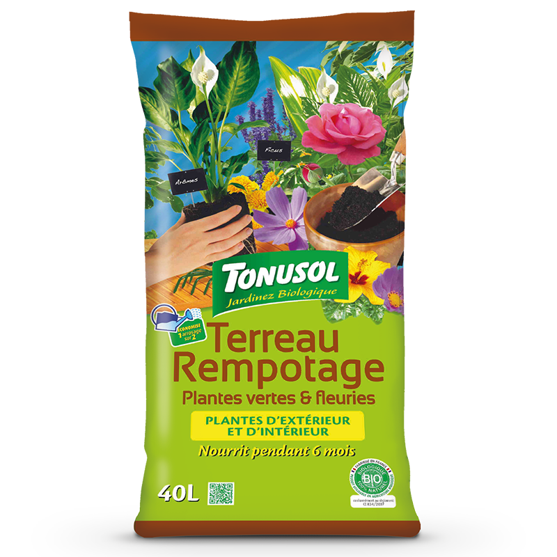 Pour rempotage de plantes vertes et fleuries d'extérieur et d'intérieur.