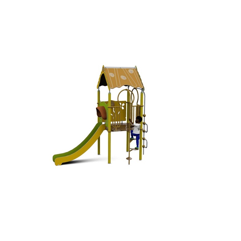 De configuration compacte, cette aire de jeux permet aux enfants de s'amuser en sécurité.