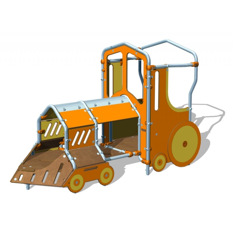 De configuration compacte, cette aire de jeux permet aux enfants de s'amuser en sécurité.