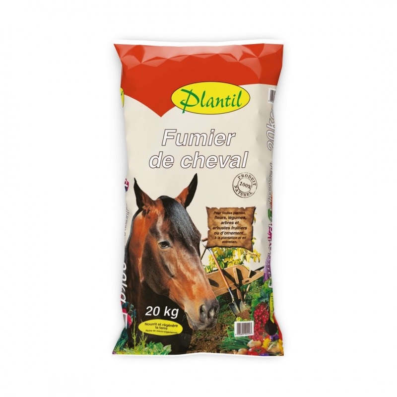 Composition : Compost de fumier de cheval pailleux et de fumier de cheval sur litière d'écorces broyées.