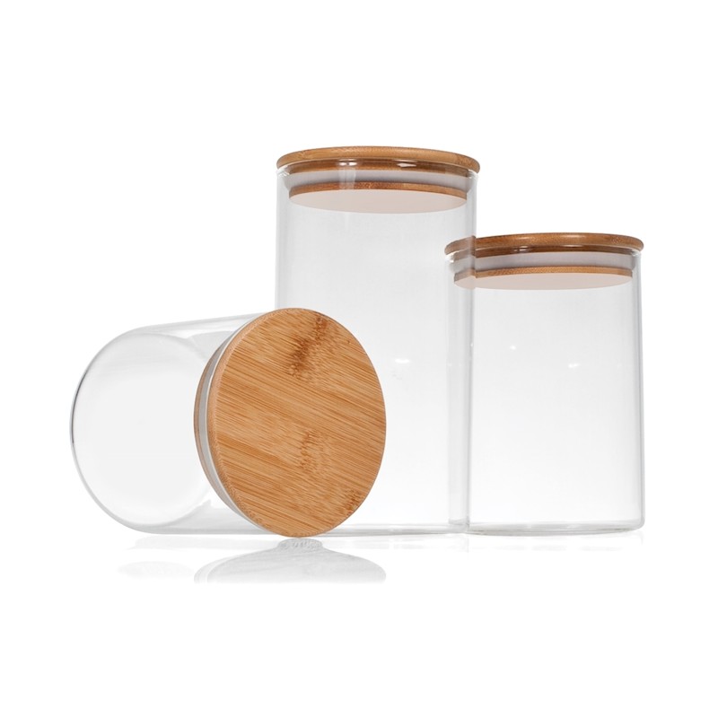 Bocaux en verre Borosilicate avec couvercle en bambou