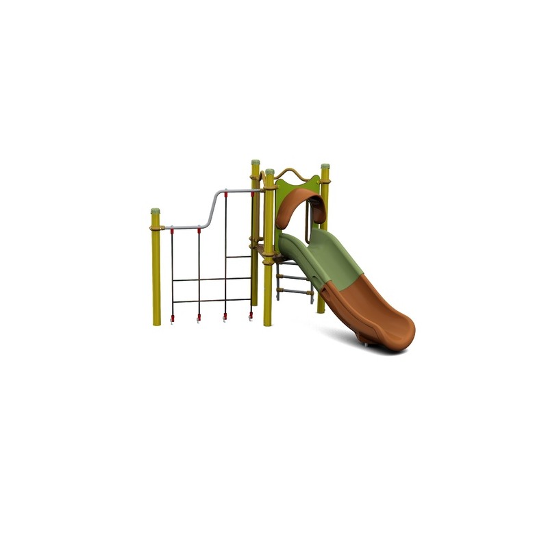 De configuration compacte, cette aire de jeux permet aux enfants de s'amuser en sécurité.