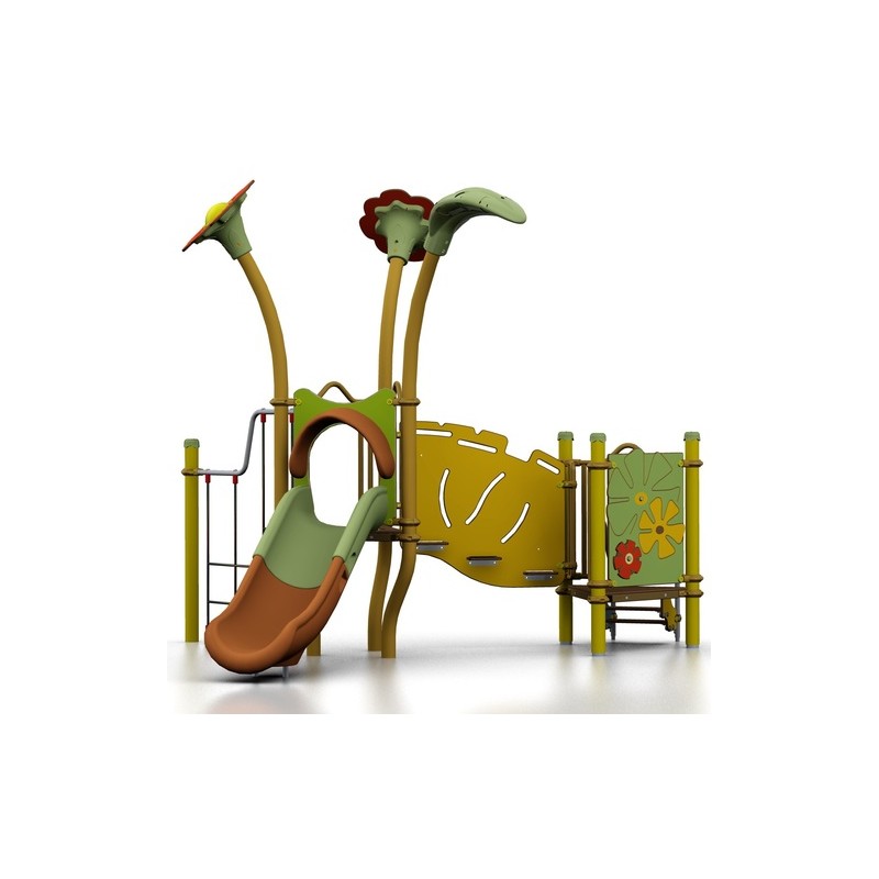 De configuration compacte, cette aire de jeux permet aux enfants de s'amuser en sécurité.