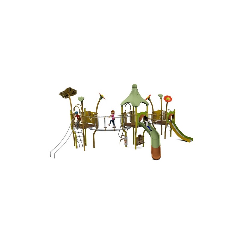 De configuration compacte, cette aire de jeux permet aux enfants de s'amuser en sécurité.