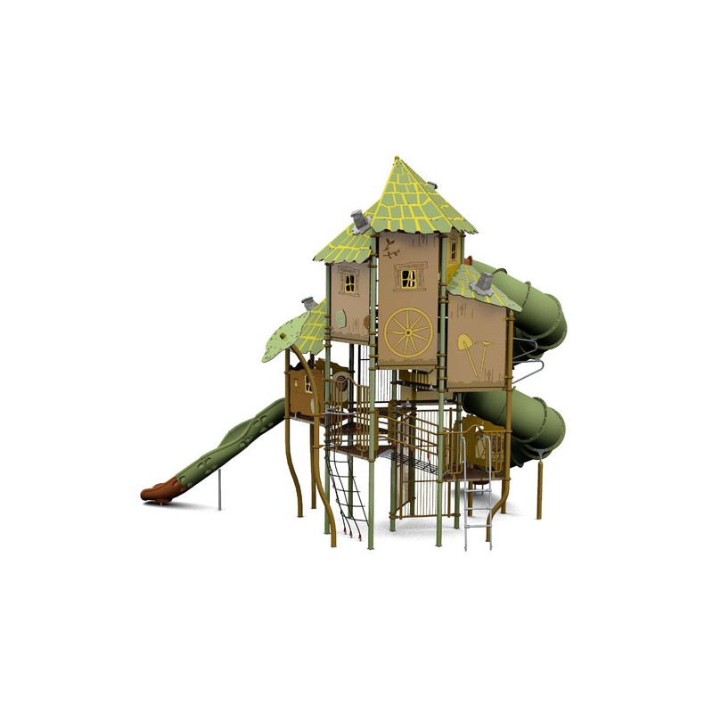 De configuration compacte, cette aire de jeux permet aux enfants de s'amuser en sécurité.