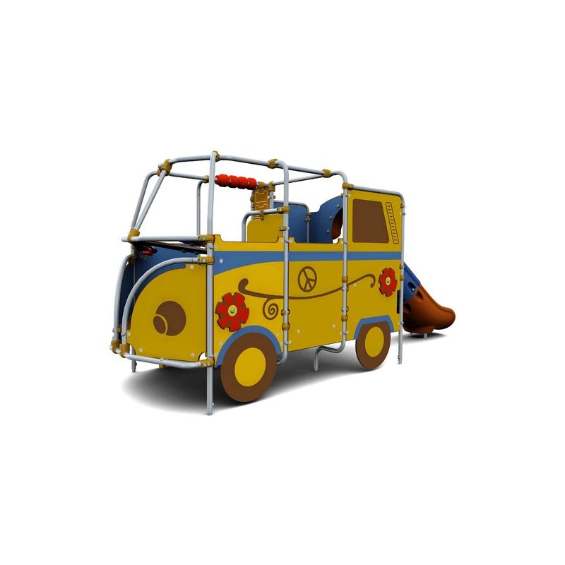 De configuration compacte, cette aire de jeux permet aux enfants de s'amuser en sécurité.
