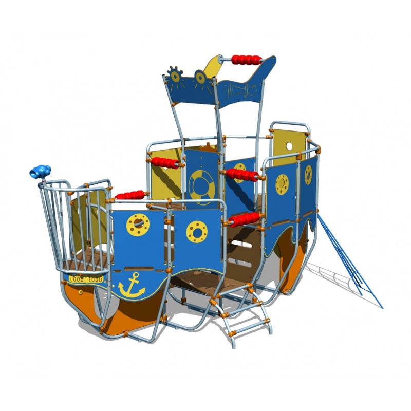 De configuration compacte, cette aire de jeux permet aux enfants de s'amuser en sécurité.