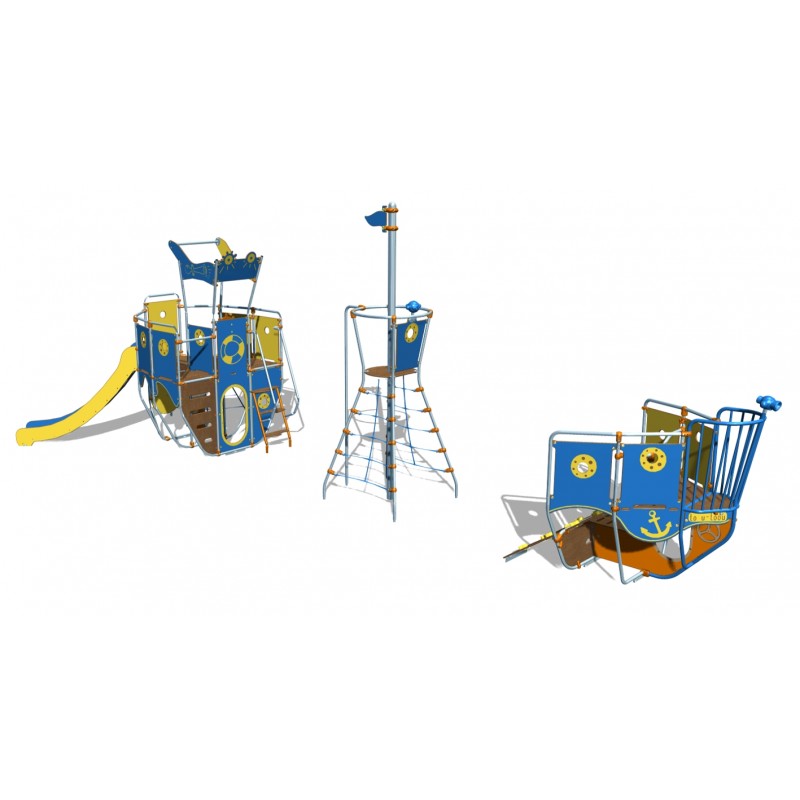 De configuration compacte, cette aire de jeux permet aux enfants de s'amuser en sécurité.