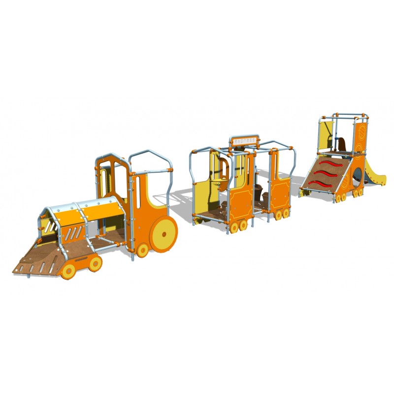 De configuration compacte, cette aire de jeux permet aux enfants de s'amuser en sécurité.