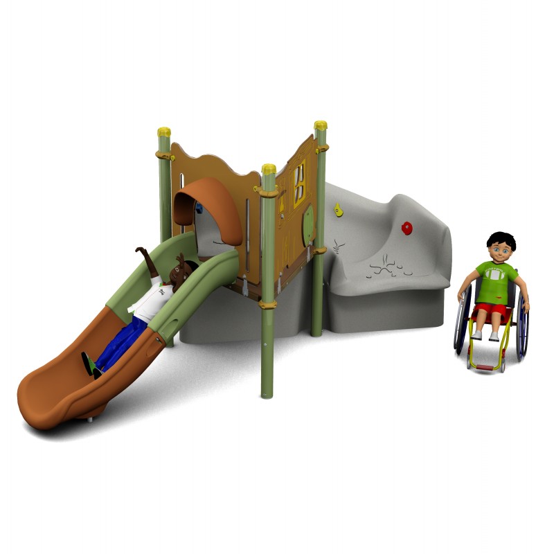 De configuration compacte, cette aire de jeux permet aux enfants de s'amuser en sécurité.