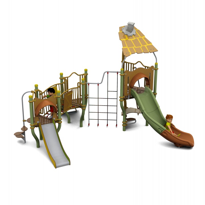 De configuration compacte, cette aire de jeux permet aux enfants de s'amuser en sécurité.