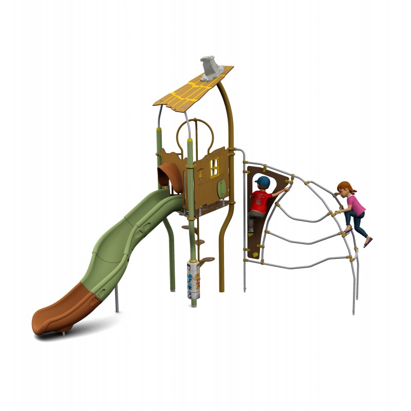 De configuration compacte, cette aire de jeux permet aux enfants de s'amuser en sécurité.