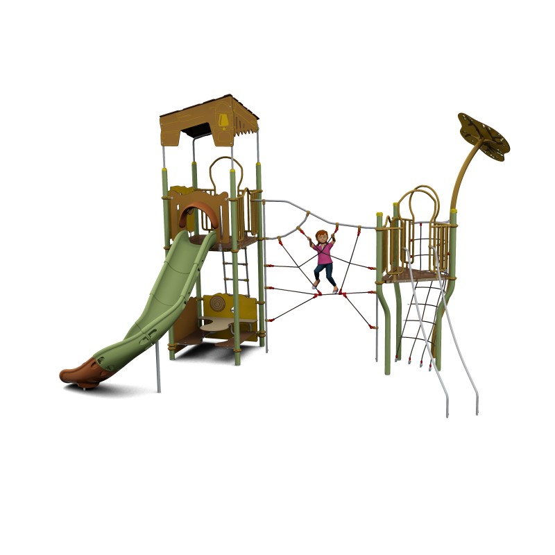 De configuration compacte, cette aire de jeux permet aux enfants de s'amuser en sécurité.