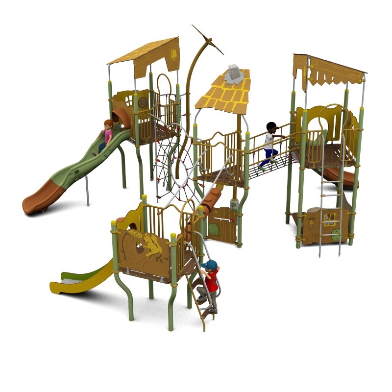 De configuration compacte, cette aire de jeux permet aux enfants de s'amuser en sécurité.