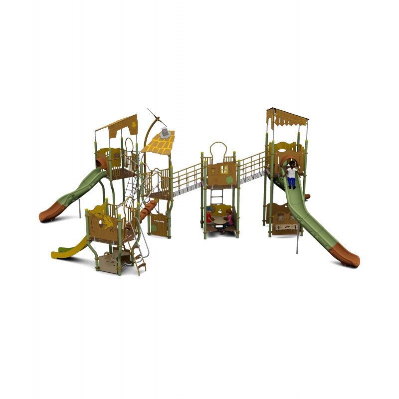 De configuration compacte, cette aire de jeux permet aux enfants de s'amuser en sécurité.