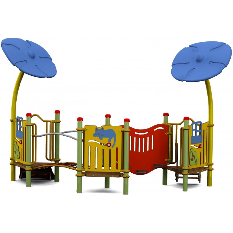 De configuration compacte, cette aire de jeux permet aux enfants de s'amuser en sécurité.