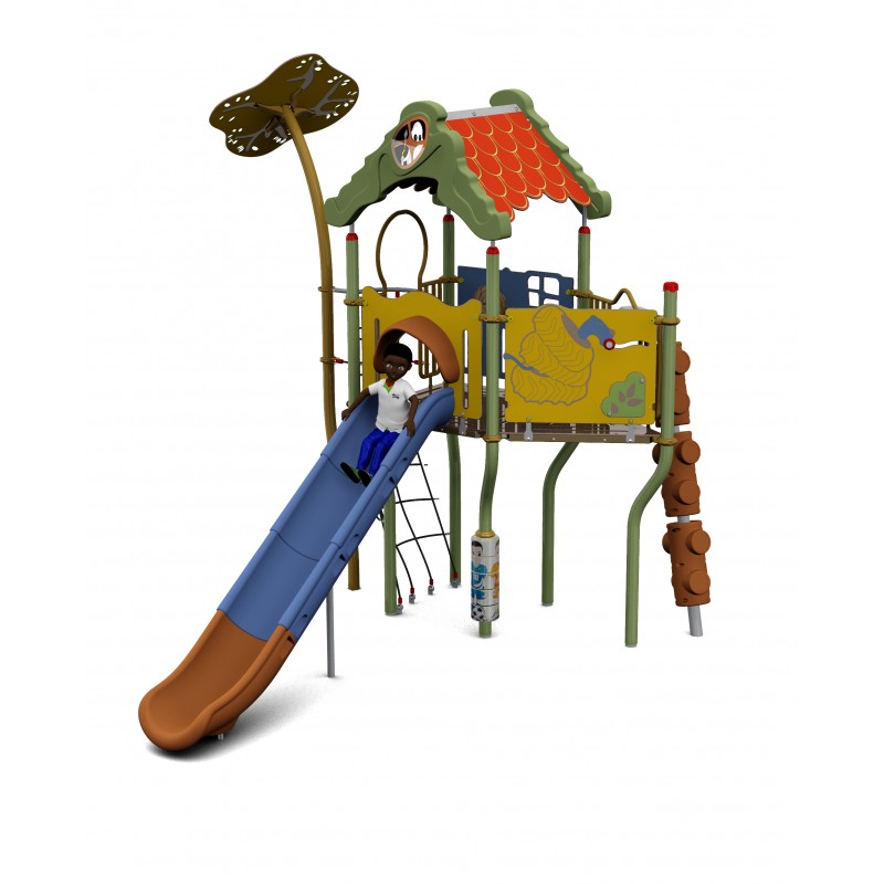 De configuration compacte, cette aire de jeux permet aux enfants de s'amuser en sécurité.