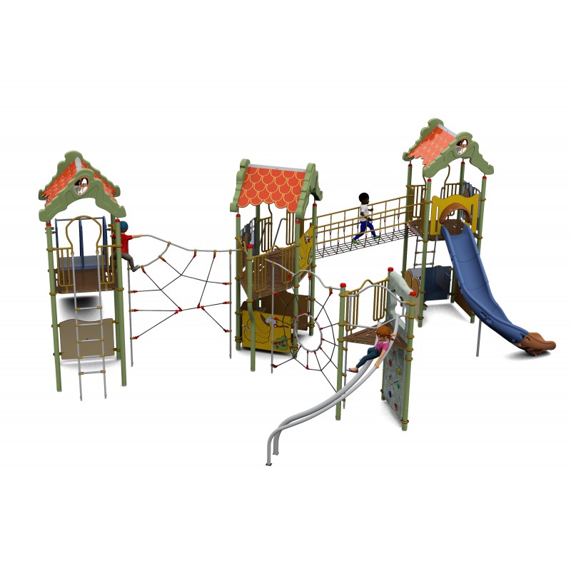 De configuration compacte, cette aire de jeux permet aux enfants de s'amuser en sécurité.