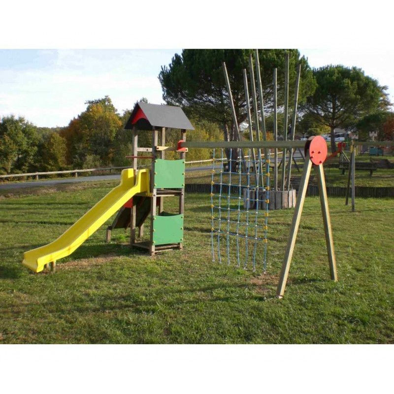 1 tour; 1 filet à grimper; 1 toboggan; 1 plan incliné