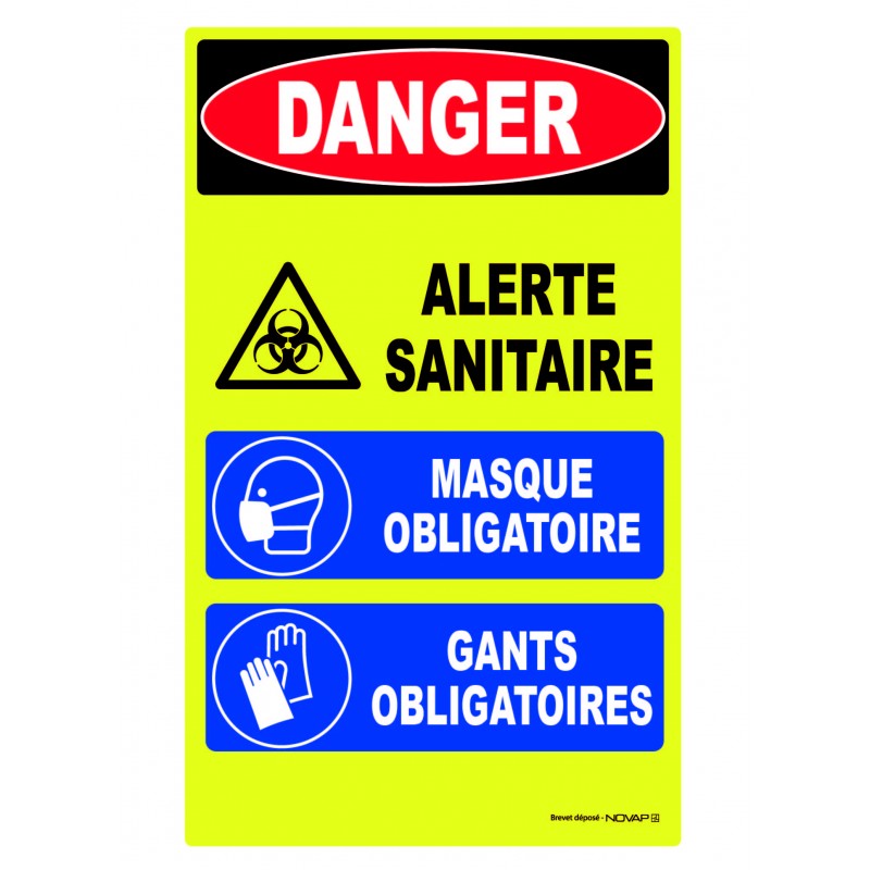 Ce panneau vous permettra d'indiquer l'alerte sanitaire, de prévenir de son danger et d'indiquer que le port du masque et de gants est obligatoire.
