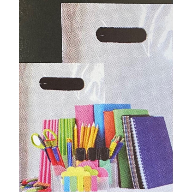 Sacs PE blanc à poignées découpées, 300x350+50 mm
