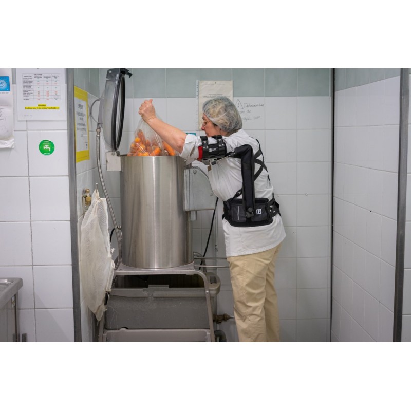 Cet exosquelette reproduit le mouvement naturel de l’épaule sur toute son amplitude. Léger et peu encombrant, il peut être porté par-dessus des vêtements de travail.