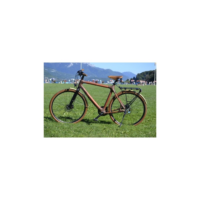 Options sur le modèle "Equipé" (voir produit associé) : éclairage avant et arrière, dynamo, garde-boue en bambou, béquille et porte bagage