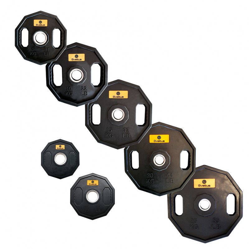 Le revêtement caoutchouc de ces disques assure un maximum de sécurité en cas de chute.