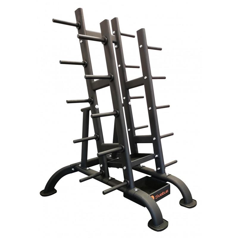 Permet de ranger 20 kits de musculation (non fournis) avec disques de diamètre 28 mm