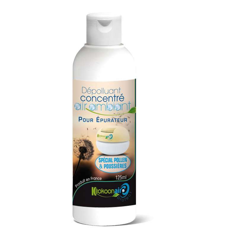 C’est une solution concentrée qui retire les pollens et les poussières de l’air ambiant et les fixe dans le contenant prévu à cet effet.