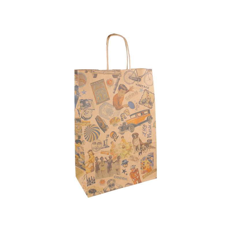 250 sacs kraft naturel à poignées torsadées 200x100x290 mm "Vintage"