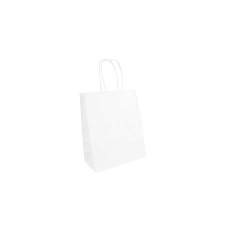 250 sacs papier blanc à poignées torsadées 180x80x215 mm